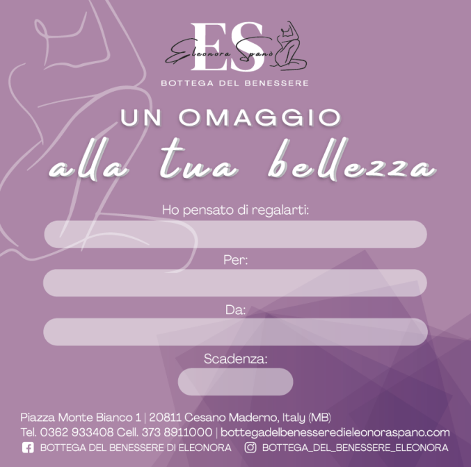 Sono Eleonora, titolare di Bottega del Benessere, esperta estetista e specializzata in trattamenti di rimodellamento corpo e viso, con esperienza in questo settore da oltre 20 anni e in continua formazione.